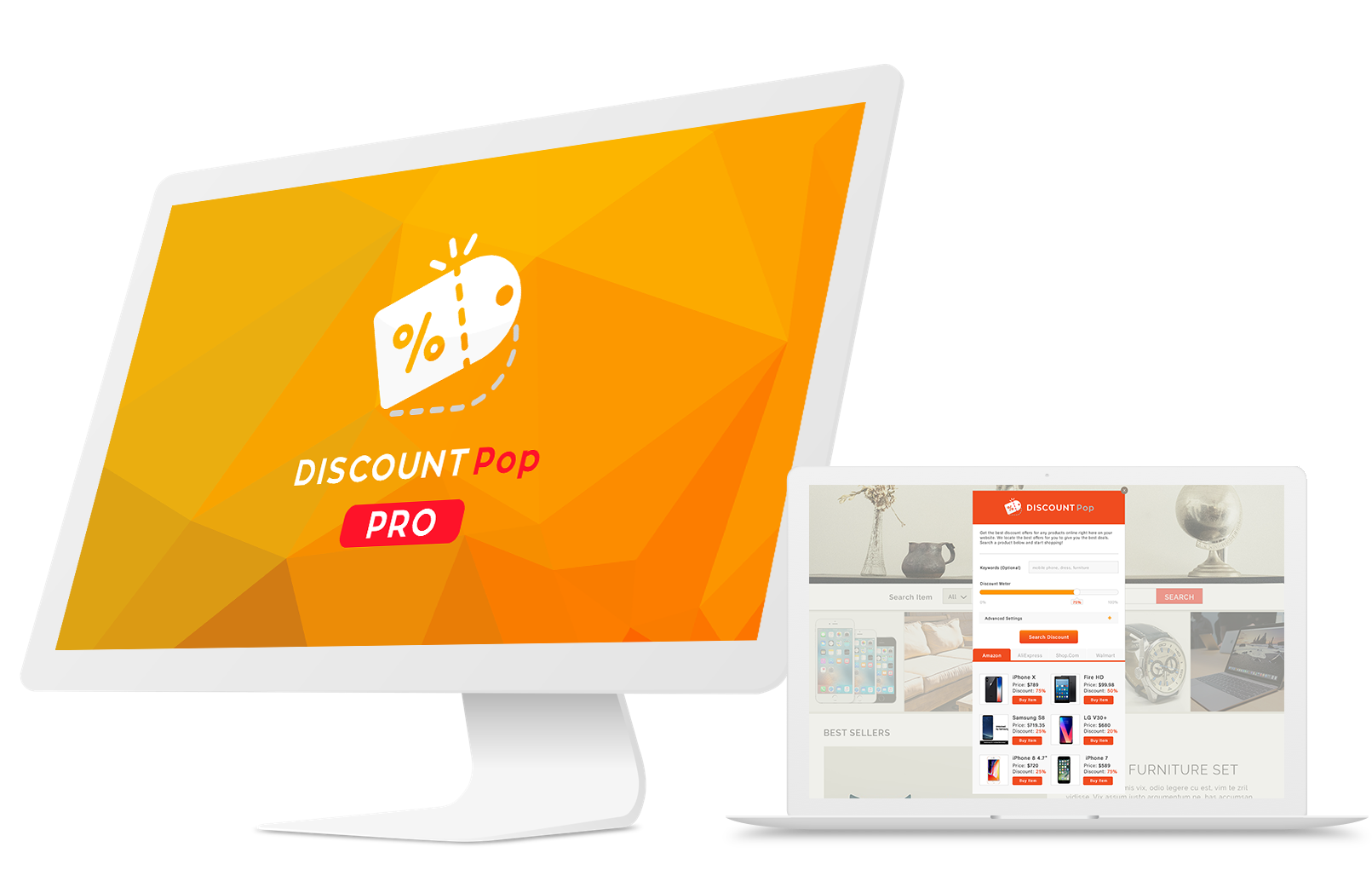 Not only that, DiscountPop Pro banners and popups would allow your customers to search highly discounted items on 4 eCommerce websites. Just enter the keyword and the software will automatically return results with the best discount offer.
