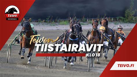 Vuonna 2026 Teivossa kilpaillaan 36 kertaa ja järjestetään muita tapahtumia ympäri vuoden. Järjestä oma tilaisuutesi Teivossa, vuokraamme kokous- ja juhlatiloja suuriin ja pieniin tapahtumiin! Koe … Käsiohjelma Ravit Jun 28, 1994 · Tampereen tiistai-illan ravit alkavat Teivon radalla klo 18. Mar 25, 2026 · 7 oikein -lehdessä julkaistaan kotimaan ravien käsiohjelmasivut vihjeineen ja tallikommentteineen torstaista keskiviikkoon ja Ruotsin pääpelin … Velodromintie 2 33420 Ylöjärvi 2 days ago — Teivon 7.3.2026 divisioonafinaaliravit järjestetään klo 10 alkaen nopeutetulla aikataululla. Lauantain ravit aikaistetaan rataolosuhteiden ... Kohdelista | Toto - Veikkaus 50 likes, 0 comments - teivon_ravit on March 12, 2026: " ️ Teivossa ajetaan vielä kolmet ravit maaliskuussa Teivon ravikausi jatkuu maaliskuussa vielä kolmen ravipäivän verran. Tampereella … Teivon Ravikeskus: Etusivu Tiistain Teivon käsiohjelmasivut ladattavissa 1 review Ravimaailma: Vihjepalvelut