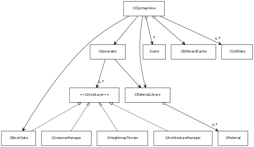 The following class diagram shows all the objects involved in the functioning of the CClipmapView:
