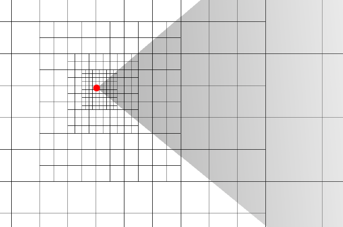 The engine then assumes the existence an array of additional grids, each one having cells with dimensions twice the size of the previous grid. These are known as the LOD 1..N cells.