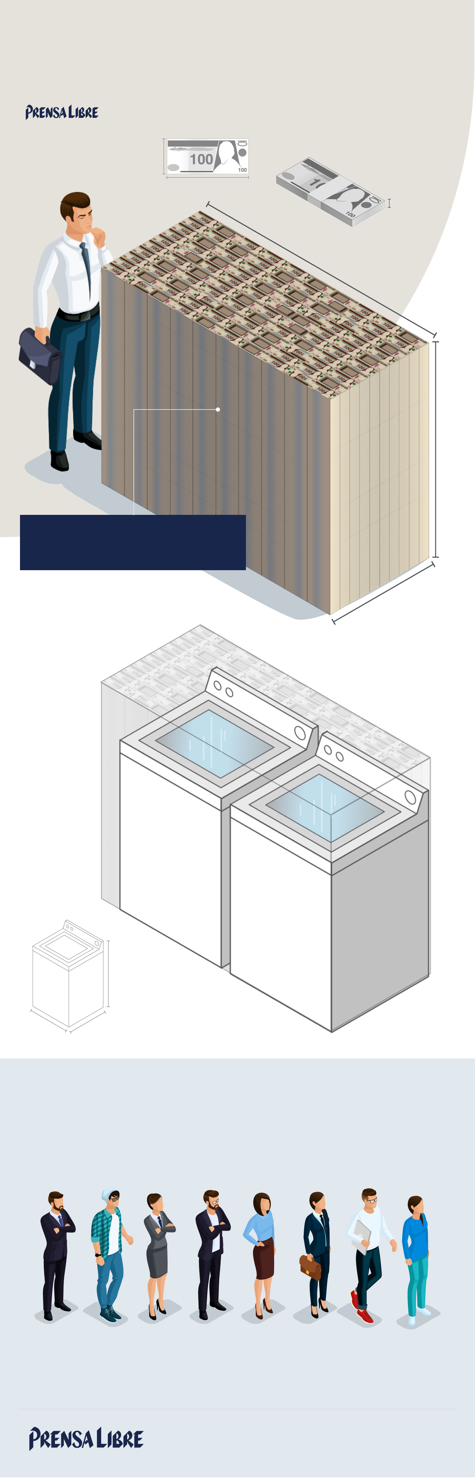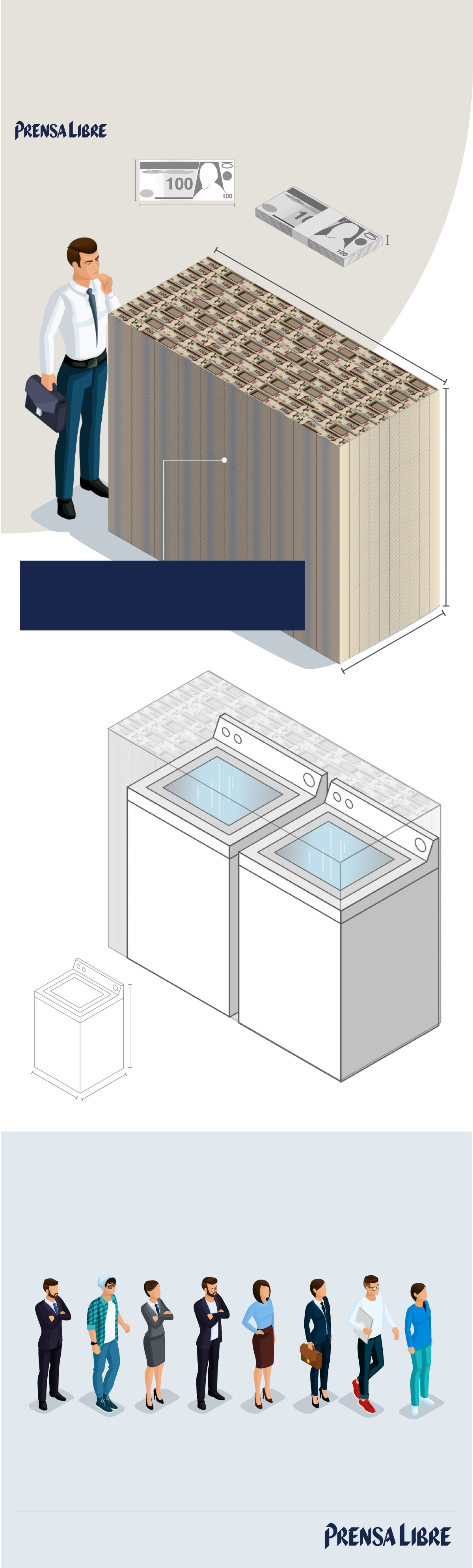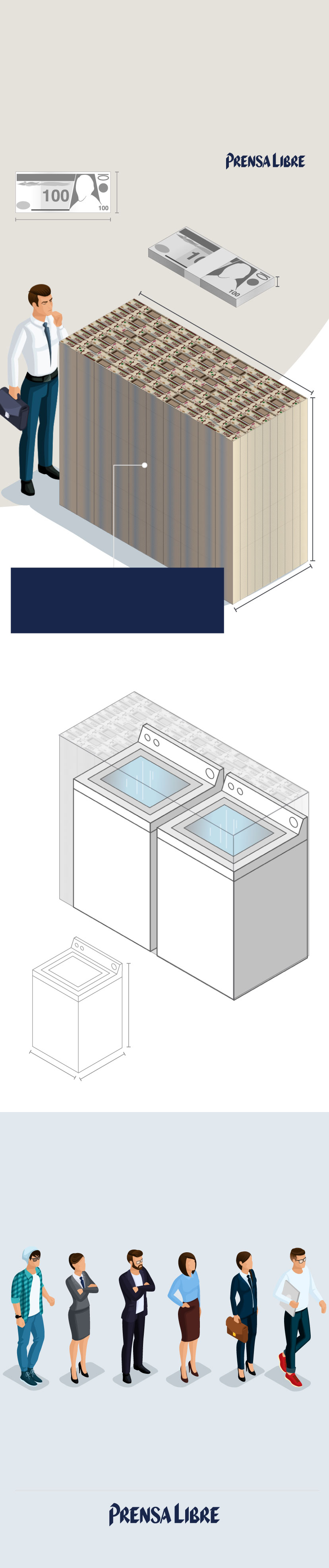 El espacio físico que ocuparían Q100 millones en billetes de Q100 equivaldría a más de dos lavadoras tamaño estándar juntas.