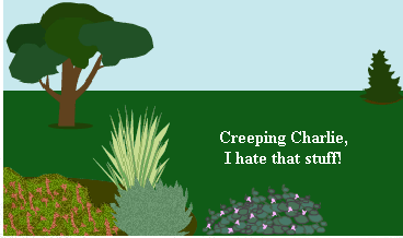 Creeping Charlie is moving from the lawn into this perennial bed. Click on the herbicide that is best suited for the job.