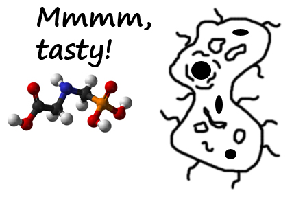 Specific microbes feed on the glyphosate molecules.