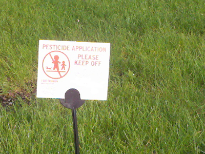If you have a service do your lawn for you or you are out for a walk and you see this sign, it is a good idea to keep the pets and kids off the grass. This sign warns you that an application has been made.