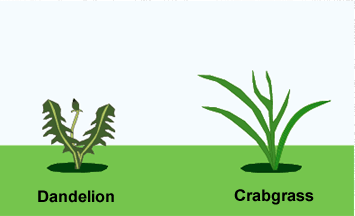 Dandelion (a perennial) and crabgrass (an annual) are common lawn pests. Click on the plant that would be best controlled in the spring.