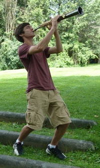 Theron Lay-Sleeper is a high flyer and a rainbow rider and a straight-shootin' sunovagun. A Freshman this year, he plans on majoring in International Relations and Journalism. He is interested in politics, sociology, photography, and environmental biology as well as medieval warfare, astrophysics, and wilderness survival. Human-induced climate change and lack of education are important issues for him, and he hopes to effect change in those issues through his proposed career-path. Born on 02/22 at twenty of two and measuring in at 22 inches long, it is clear why he considers two to be his lucky number. He grew up in Cabot, Vermont with his two older brothers in a big yellow house on the backstreet. He loves making art and music, and speaking other languages. He studied French in his 200-student school (Pre-K through 12th), and in his senior year he went through the Congress-Bundestag Scholarship Program and AFS to spend a year as an exchange student in Salzwedel, Germany. There, he became fluent in German, soccer, and clubbing. He plays a mean saxophone and wears his hair shaggy.