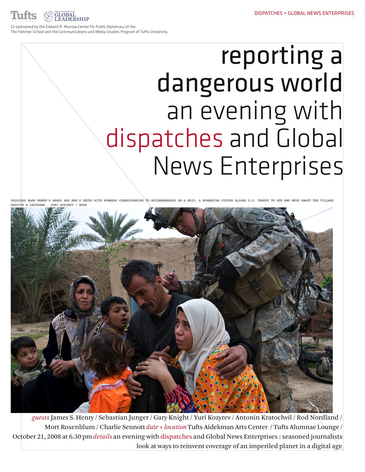 Cosponsored by dispatches, Global News Enterprises, the Edward R. Murrow Center at The Fletcher School, and Communications and Media Studies