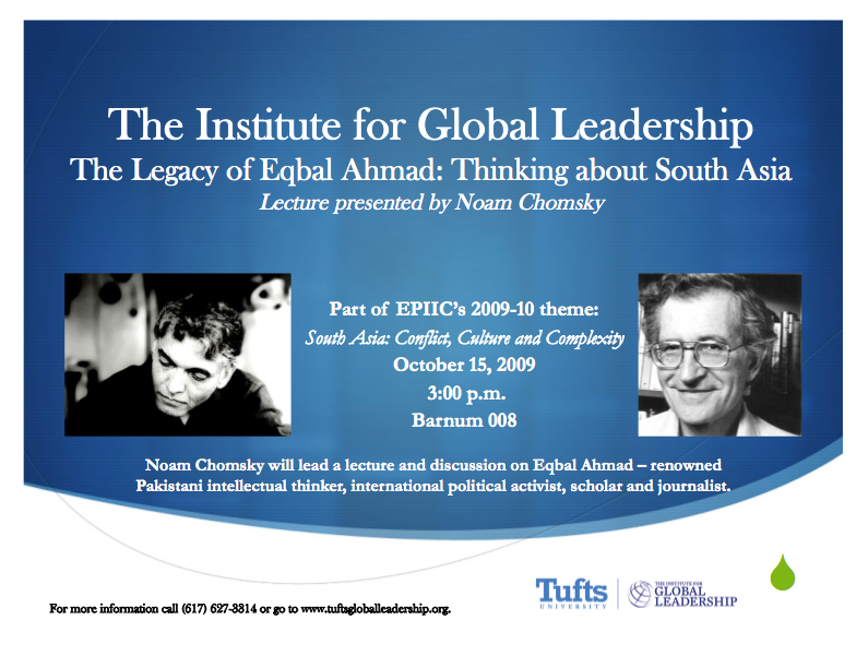 Part of EPIIC’s 2009-10 theme: South Asia: Conflict, Culture and Complexity Noam Chomsky will lead a lecture and discussion on Eqbal Ahmad – renowned Pakistani intellectual thinker, international political activist, scholar and journalist.