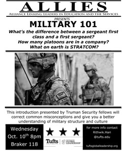 Join ALLIES and the Truman Security fellows for an information introduction to military structure and culture!