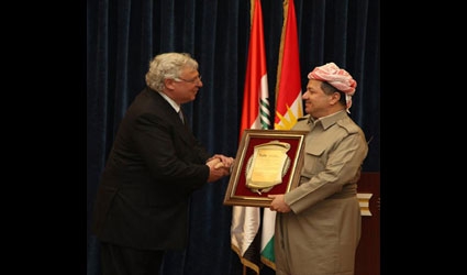 The award was presented to President Barzani by Robert Bendetson, Co-Chair of the Institute's External Advisory Board, "in recognition of your valorous and distinguished work on behalf of a united and peaceful Iraqi future for all its peoples."
