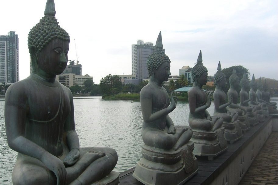 A special temple floats on the water in Colombo - you must walk across a dock to access this unique place covered in Buddha statues.