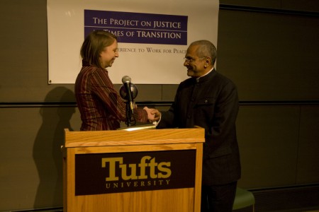 Kelsi Stine (Tufts 2010) and President Jose Ramos Horta of East Timor, Spring 2008, during PJTT/IGL class at Tufts University. Kelsi presented President Horta with the Dr. Jean Mayer Global Citizenship Award