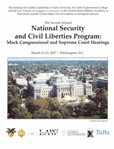 This program is an opportunity for students to experience and understand the fundamental relationship between civil rights and national security concerns. Closely allied with ALLIES, it brings together students from the Tufts campus and from the US military academies to address controversial issues such as Guantanamo, warrantless wiretaps, and the extent of Executive Privilege.