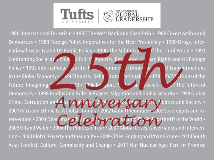 Starting in January 2010, the Institute for Global Leadership began celebrating its 25th anniversary. Over the next 11 months, through May 2011, the Institute will be holding events that both reflect the last 25 years and preview the next 25. Please see below for the full 25th Anniversary Calendar.