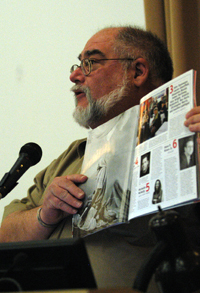 A note from Canon: Canon, the world leader in imaging technologies is proud to sponsor VII agency and this conference at Tufts University. Canon has demonstrated a long term commitment to photojournalism thru its annual sponsorship of the World Press Photo Awards, the Perpignon Festival, and the Best of Photojournalism competition sponsored by the National Press Photographers Association. Canon is a producer of top quality 35mm film and digital cameras, lenses, video cameras, broadcast television lenses, ink jet printers and a wide of array of commercial, industrial, and medical equipment.