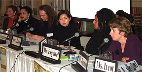 | Lydia Degarrod, Jayne Ifekwunigwe, Murray Forman, Uyen Tang, Mr.Lif (view obstructed), and Alexis Esquivel with translator |