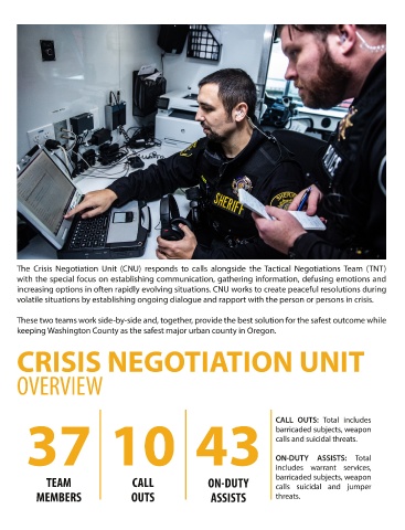 The Crisis Negotiation Unit (CNU) responds to calls alongside the Tactical Negotiations Team (TNT)
