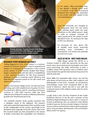 RESEARCH STUDY INCREASES ACCURACY Nikki Wagar joined the WCSO as a